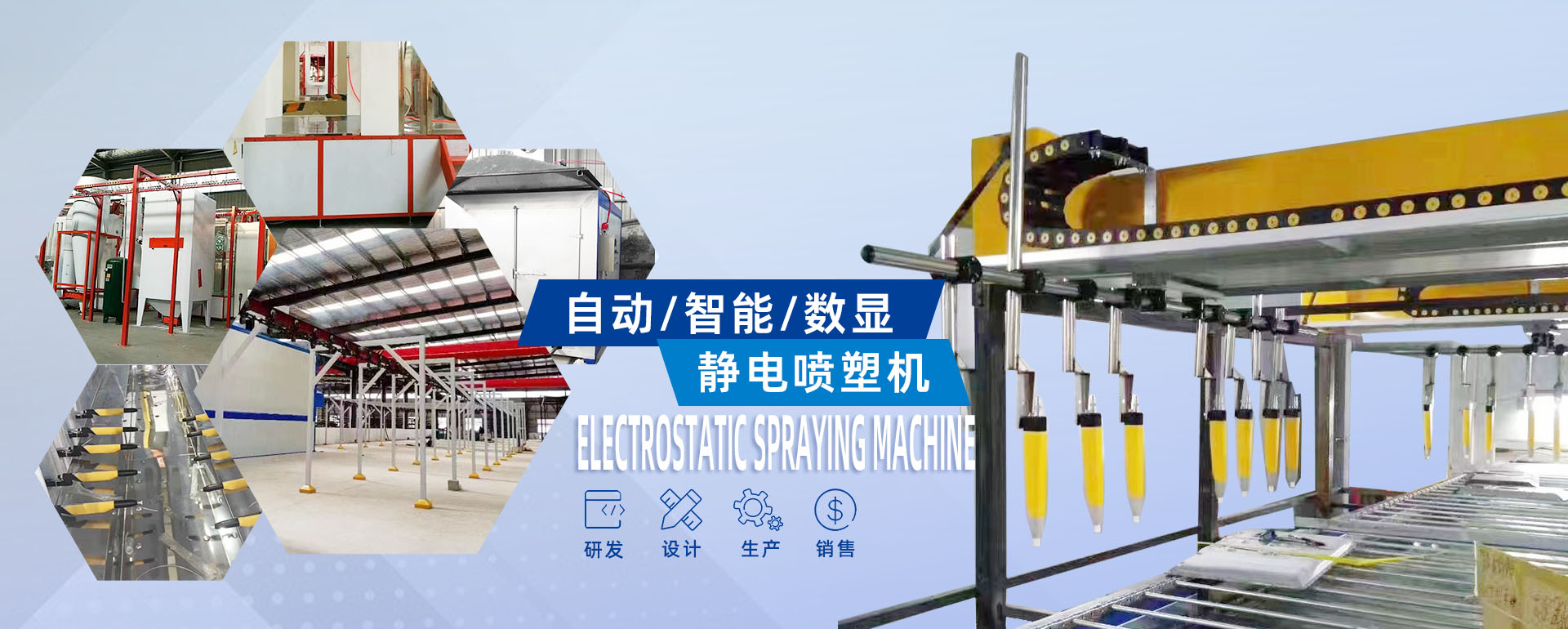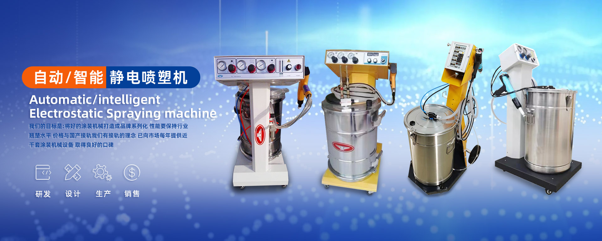 專業(yè)研發(fā)、設(shè)計(jì)、生產(chǎn)、銷售靜電噴塑機(jī)、自動(dòng)靜電噴塑機(jī)、智能靜電噴塑機(jī)